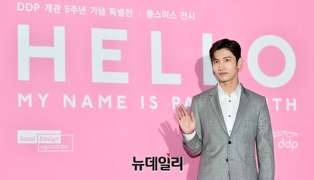 가수 최강창민이 5일 오후 서울 중구 동대문디자인플라자에서 열린 '헬로, 마이 네임 이즈 폴 스미스(HELLO, MY NAME IS PAUL SMITH)' 전시 오픈 행사에서 포토타임을 갖고 있다.