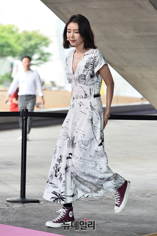배우 채정안이 5일 오후 서울 중구 동대문디자인플라자에서 열린 '헬로, 마이 네임 이즈 폴 스미스(HELLO, MY NAME IS PAUL SMITH)' 전시 오픈 행사에서 포토타임을 갖고 있다.