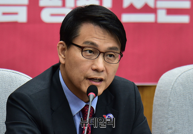 윤상현 자유한국당 의원이 7일 오전 국회에서 열린 원내대책회의에서 모두발언을 하고 있다.