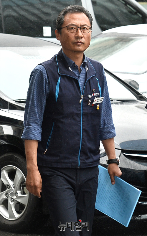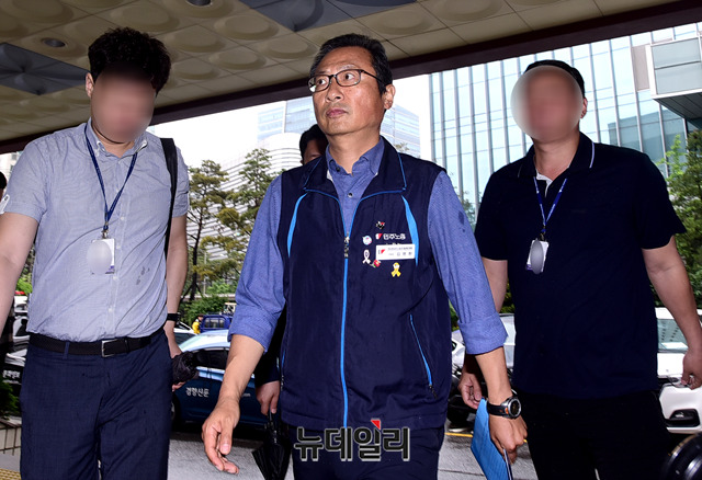 [포토] '불법시위' 주도 혐의, 경찰출석한 김명환 민노총위원장
