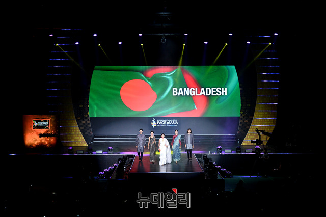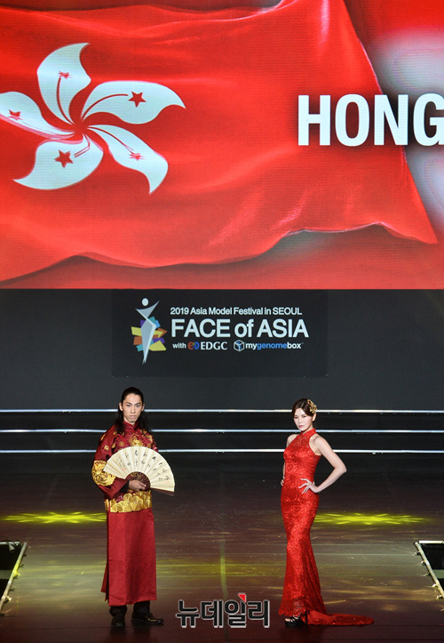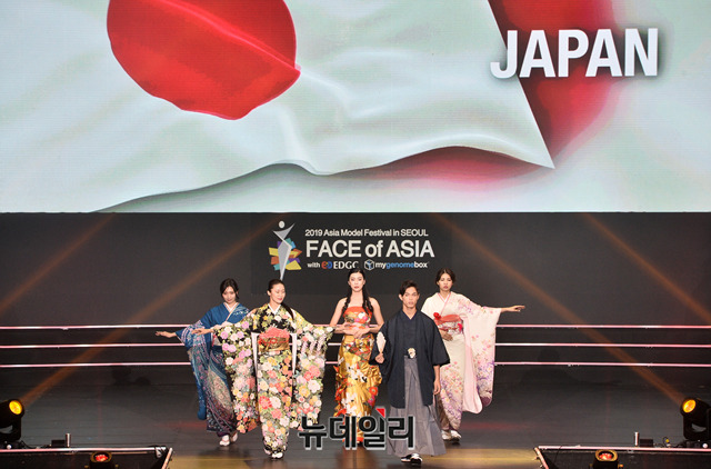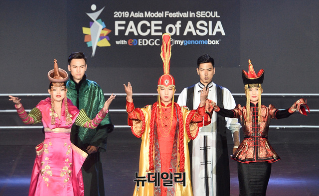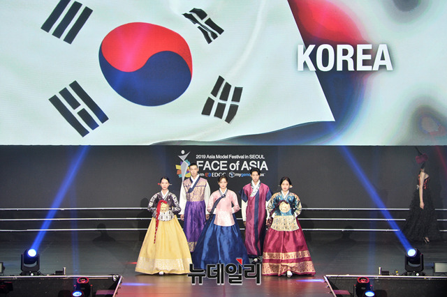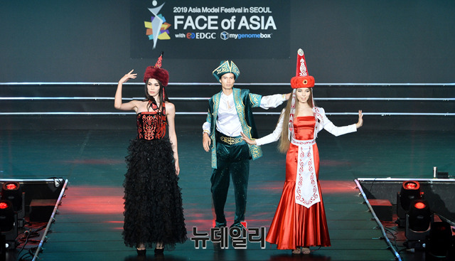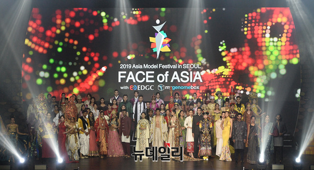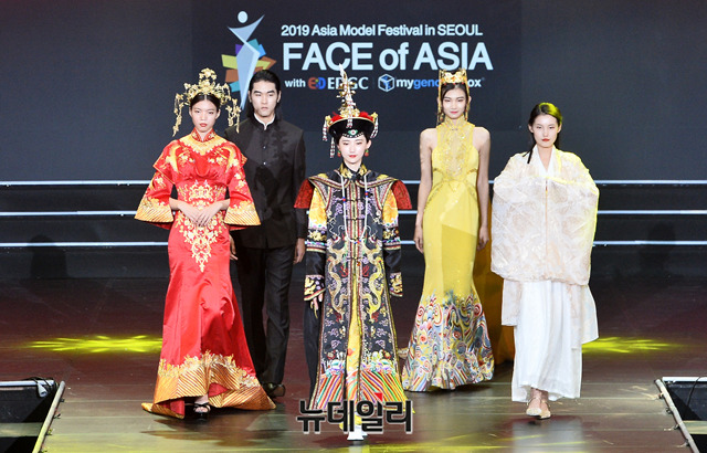 아시아 각국 신인 모델들이 7일 오후 서울 송파구 올림픽공원 올림픽홀에서 열린 '2019 FACE OF ASIA (2019 페이스 오브 아시아)'에서 런웨이를 하고 있다.