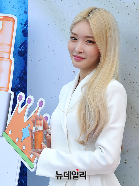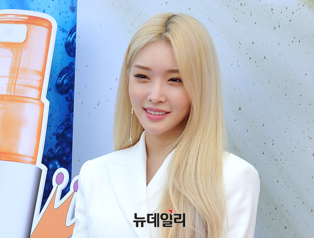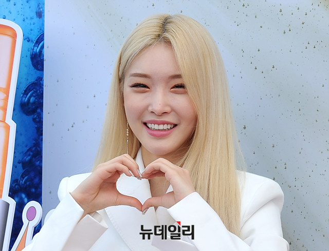 가수 청하가 11일 오후 서울 중구 신라면세점에서 열린 스킨케어 브랜드 크리니크의 '청하 키트' 출시 기념 행사에 참석해 포즈를 취하고 있다.