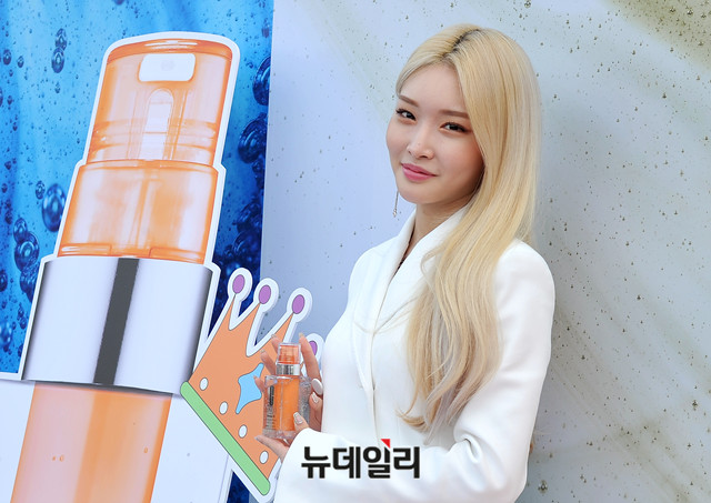 가수 청하가 11일 오후 서울 중구 신라면세점에서 열린 스킨케어 브랜드 크리니크의 '청하 키트' 출시 기념 행사에 참석해 포즈를 취하고 있다.