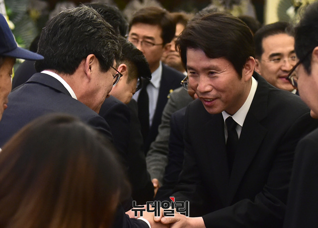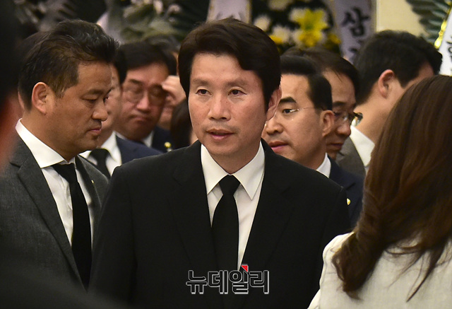이인영 더불어민주당 원내대표가 11일 서울 서대문구 신촌세브란스병원 장례식장에 마련된 고 이희호 여사 빈소에 들어서고 있다.