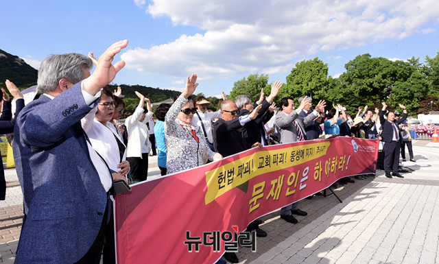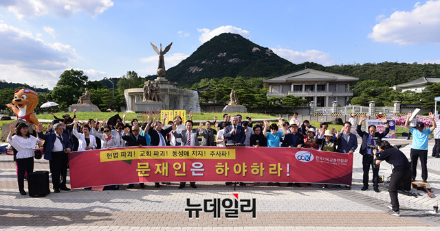 [포토] '文대통령 하야 촉구' 기도하는 한기총
