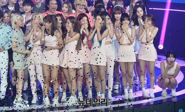 걸그룹 우주소녀가 11일 오후 서울 마포구 SBS 프리즘타워에서 열린 SBS MTV '더 쇼(THE SHOW)' 생방송에서 1위를 수상해 소감을 말하고 있다.