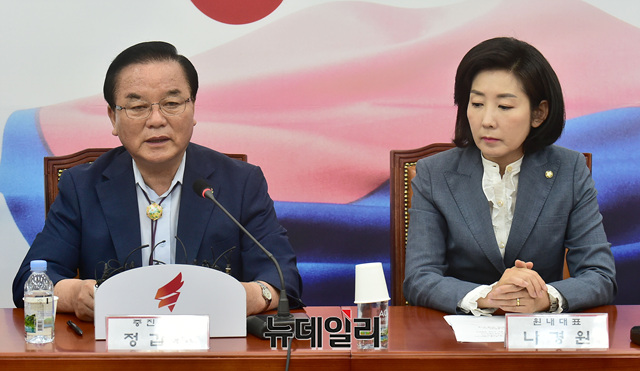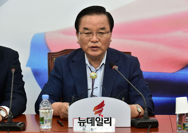 정갑윤 자유한국당 의원이 12일 오전 국회에서 열린 원내대표-중진의원연석회의에서 모두발언을 하고 있다.