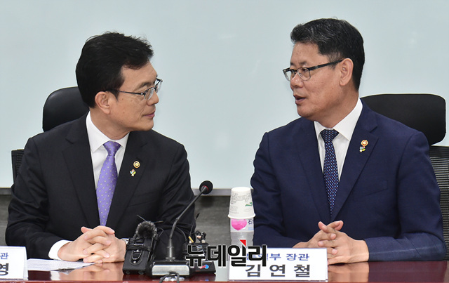 [포토] 대화 나누는 김연철 통일부 장관과 조세영 외교부 차관