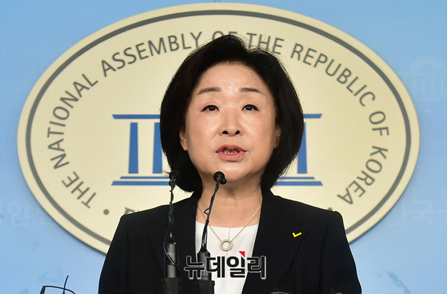 심상정 정의당 의원이 13일 오전 국회 정론관에서 차기 당대표 선거 출마 기자회견을 갖고 있다.