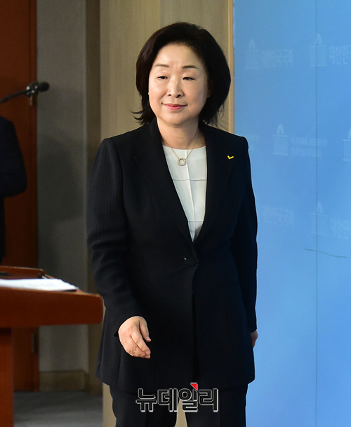 심상정 정의당 의원이 13일 오전 국회 정론관에서 차기 당대표 선거 출마 기자회견을 갖기 위해 입장하고 있다.