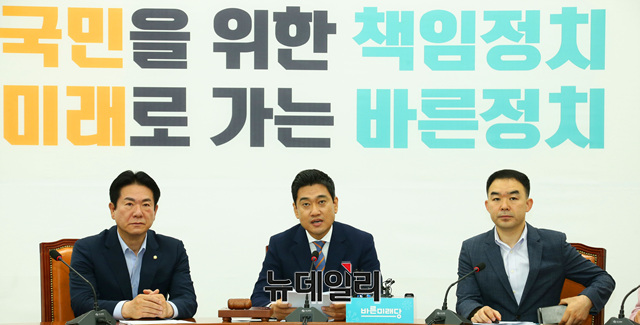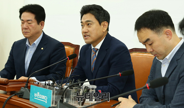 오신환 바른미래당 원내대표가 13일 오전 국회에서 열린 원내정책회의에서 모두발언을 하고 있다.