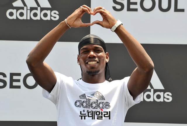 잉글랜드 프리미어리그 맨체스터 유나이티드의 폴 포그바가 13일 오후 서울 용산구 아이파크몰 풋살 경기장에서 열린 '아디다스-폴 포그바 아시아 투어' 행사에 참석해 포즈를 취하고 있다.