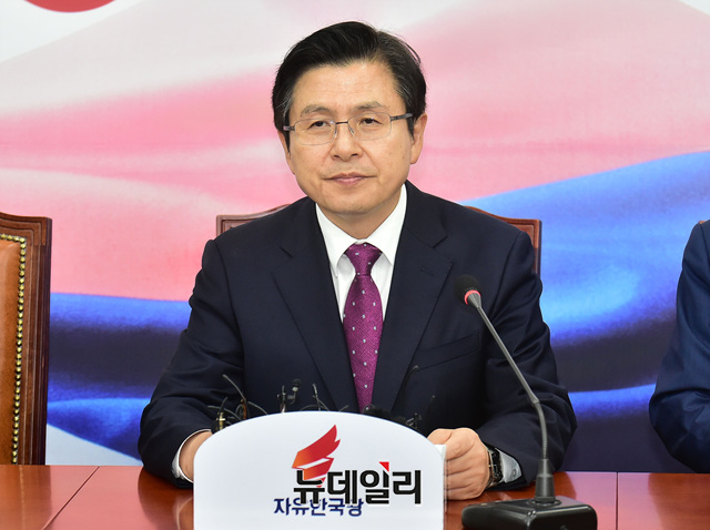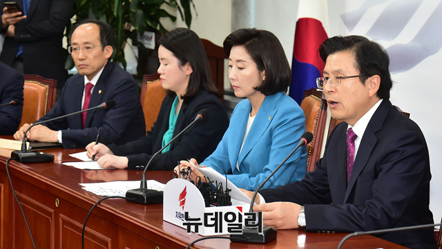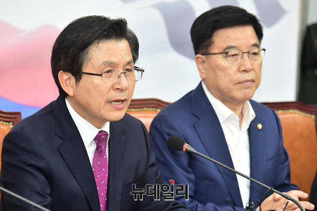 황교안 자유한국당 대표가 13일 오후 국회에서 열린 최고위원회의에서 모두발언을 하고 있다.