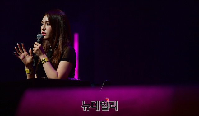 가수 전소미가 13일 오후 서울 마포구 신한판스퀘어에서 열린 솔로 데뷔 쇼케이스에서 무대를 선보이지 못한 이유에 대해 밝히고 있다. 전소미는 "(아직)완벽하게 준비가 안돼 무대를 선보이지 못해 아쉽다"고 밝혔다.