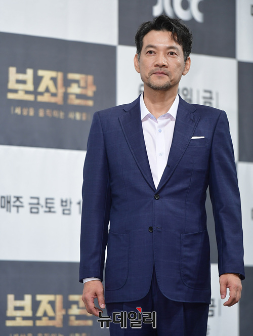 배우 정진영이 13일 오후 서울 강남구 임피리얼팰리스 호텔에서 열린 금토드라마 '보좌관(극본 이대일, 연출 곽정환)' 제작보고회에서 포토타임을 갖고 있다.