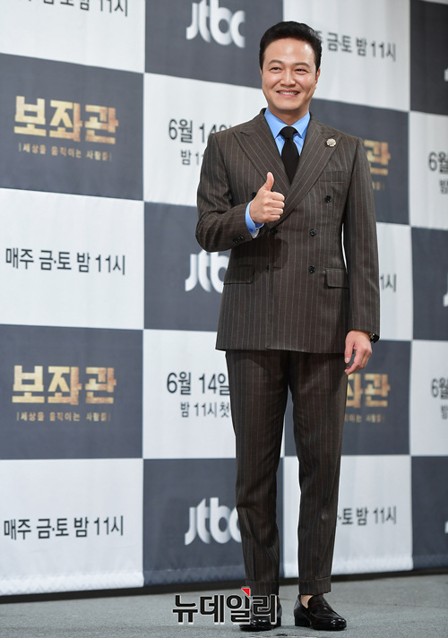 배우 정웅인이 13일 오후 서울 강남구 임피리얼팰리스 호텔에서 열린 금토드라마 '보좌관(극본 이대일, 연출 곽정환)' 제작보고회에서 포토타임을 갖고 있다.