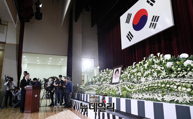 이낙연 국무총리가 14일 오전 서울 동작구 국립현충원 내 현충관에서 엄수된 고 이희호 여사의 사회장 추모식에서 조사하고 있다.