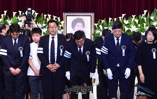 [포토] 참석자들에게 인사하는 故 이희호 여사 유족들