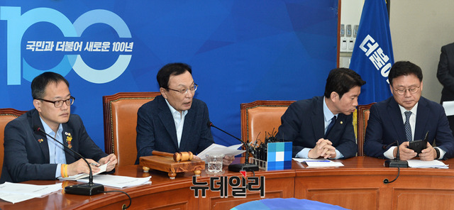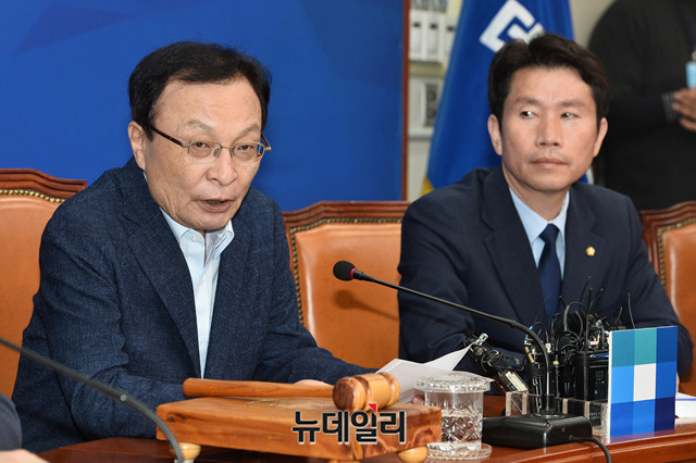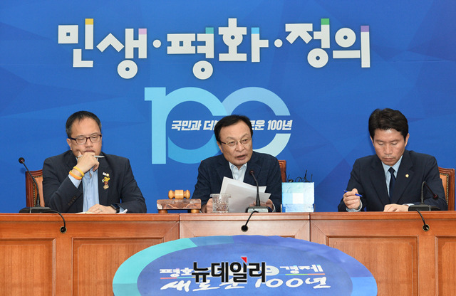 이해찬 더불어민주당 대표가 17일 오전 국회에서 열린 최고위원회의에서 모두발언을 하고 있다.