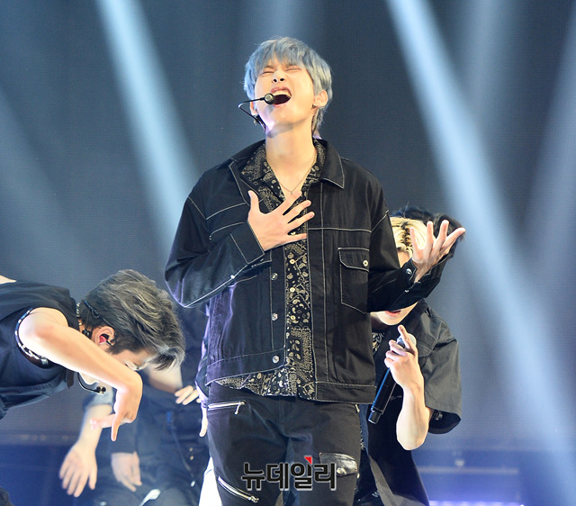 아이돌그룹 SF9(에스에프나인)이 17일 오후 서울 광진구 예스24 라이브홀에서 열린 미니앨범 'RPM(알피엠)' 발매 기념 쇼케이스에서 무대를 선보이고 있다.
