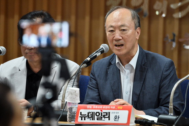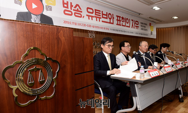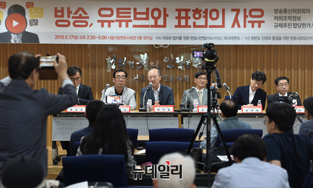 박인환 변호사 겸 바른사회시민회의 공동대표가 17일 오후 서울 서초구 서울지방변호사회관에서 열린 '방송, 유튜브와 표현의 자유' 토론회에서 발언을 하고 있다.