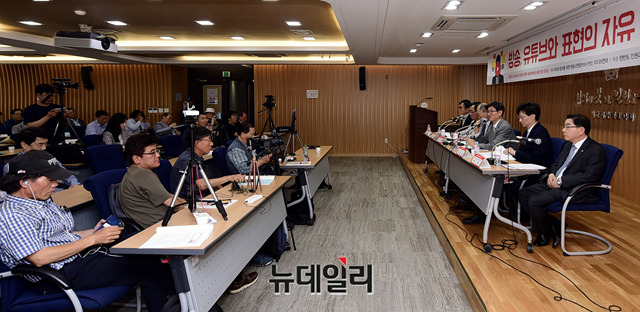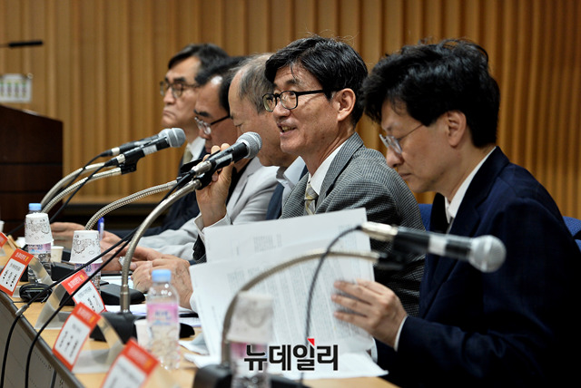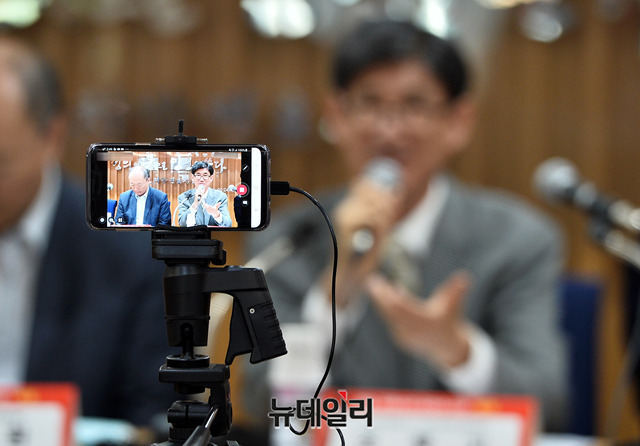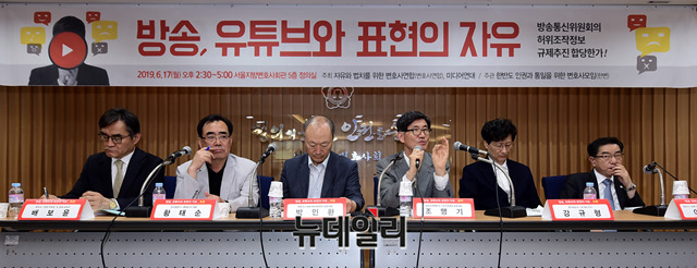 조맹기 서강대 명예교수 겸 미디어연대 공동대표가 17일 오후 서울 서초구 서울지방변호사회관에서 열린 '방송, 유튜브와 표현의 자유' 토론회에서 발제를 하고 있다.