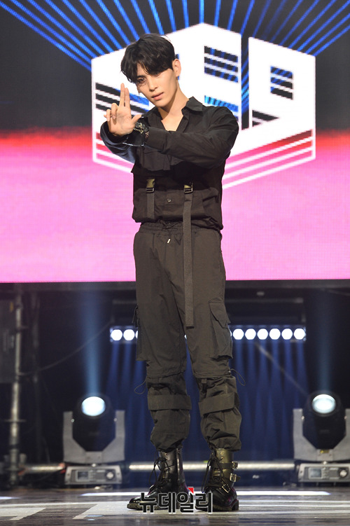 아이돌그룹 SF9(에스에프나인) 태양이 17일 오후 서울 광진구 예스24 라이브홀에서 열린 미니앨범 'RPM' 발매 기념 쇼케이스에서 포토타임을 갖고 있다.