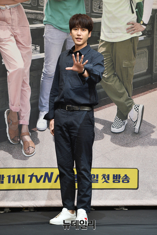 가수 규현이 18일 오전 서울 구로구 라마다 신도림호텔에서 열린 tvN 예능프로그램 '더 짠내투어' 기자간담회에서 포토타임을 갖고 있다.