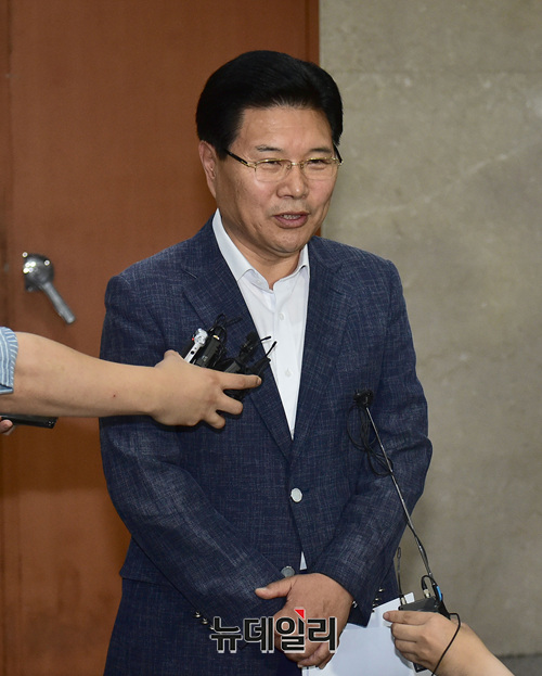 [포토] 기자들의 질문에 답하는 홍문종 의원