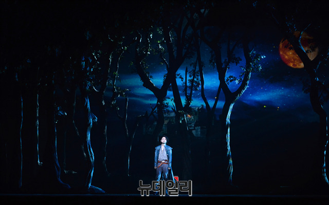 뮤지컬배우 이지훈이 18일 오후 서울 종로구 세종문화회관에서 열린 뮤지컬 '엑스칼리버' 프레스콜에서 무대 시연을 하고 있다.