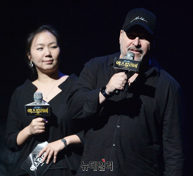 작곡가 프랭크 와일드혼(Frank Wildhorn)이 18일 오후 서울 종로구 세종문화회관에서 열린 뮤지컬 '엑스칼리버' 프레스콜에서 작품 소개를 하고 있다.