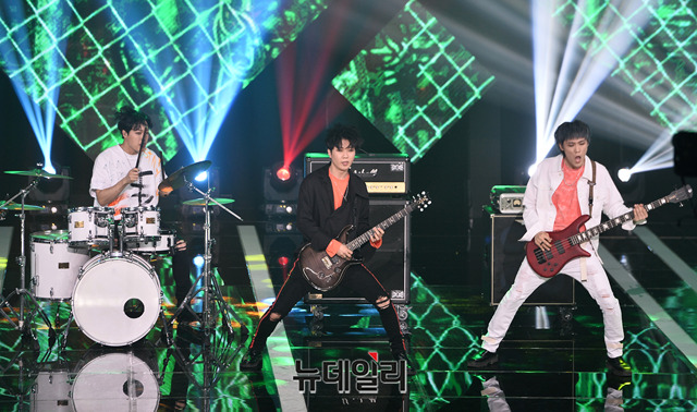밴드 Bursters(버스터즈)가 18일 오후 서울 마포구 SBS 프리즘타워에서 열린 SBS MTV '더 쇼(THE SHOW)' 생방송에서 무대를 선보이고 있다.