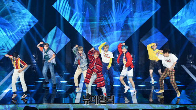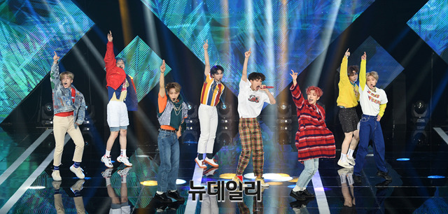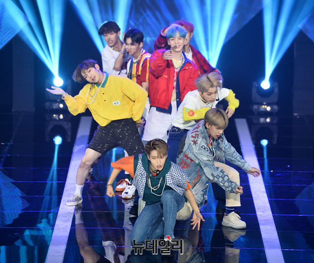 아이돌그룹 ATEEZ(에이티즈)가 18일 오후 서울 마포구 SBS 프리즘타워에서 열린 SBS MTV '더 쇼(THE SHOW)' 생방송에서 무대를 선보이고 있다.