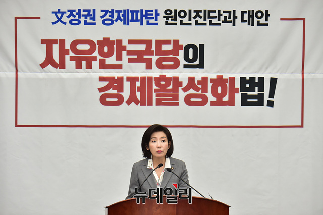 나경원 자유한국당 원내대표가 19일 오전 국회에서 열린 정책의원총회에서 참석해 모두발언을 하고 있다.