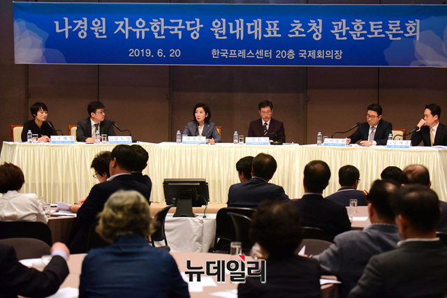 나경원 자유한국당 원내대표가 20일 오전 서울 중구 프레스센터에서 열린 관훈토론회에 참석해 질문에 답하고 있다.