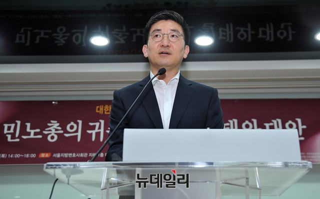 김세연 여의도연구원장이 20일 오후 서울 서초구 서울지방변호사회에서 열린 '민노총의 귀족노조, 그 실태와 대안' 토론회에 참석해 인사말을 하고 있다.
