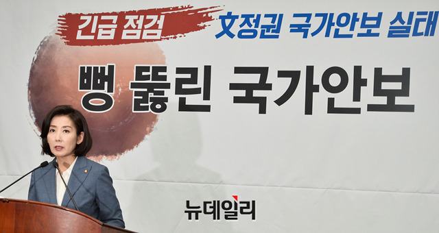 나경원 자유한국당 원내대표가 20일 오후 국회에서 열린 안보의원총회에서 모두발언을 하고 있다.