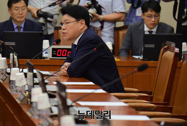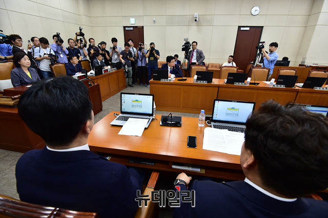 장제원 자유한국당 정개특위 간사가 20일 오후 국회에서 열린 정치개혁특별위원회 전체회의에 참석해 앉아 있다. 이날 장 의원을 제외한 자유한국당 의원들은 불참했다.