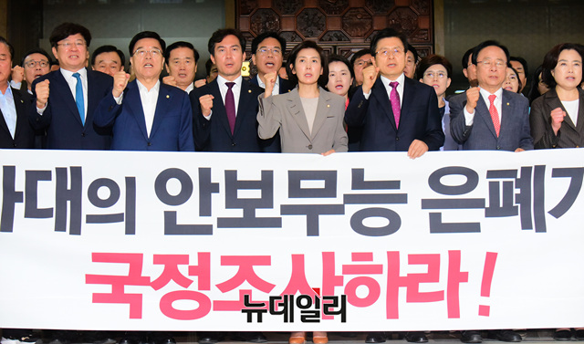 [포토] '北선박 입항 은폐 및 조작' 규탄구호 외치는 한국당