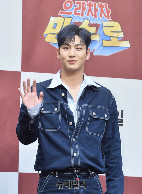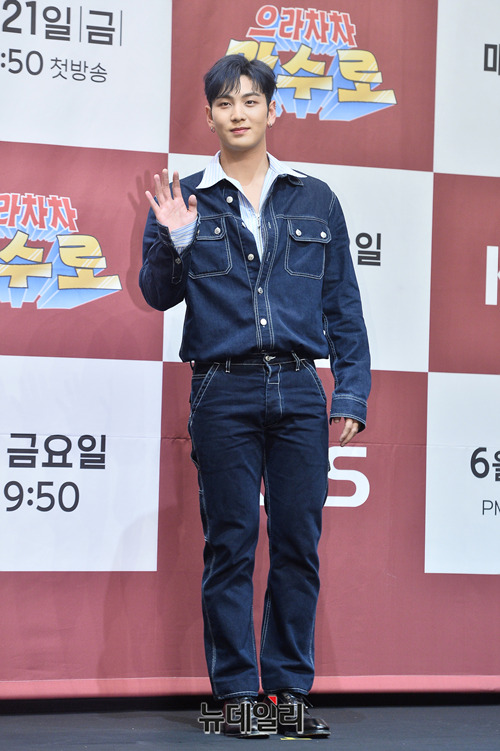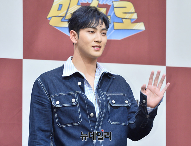 아이돌그룹 뉴이스트 백호가 21일 오후 서울 구로구 라마다 신도림호텔에서 열린 KBS 2TV 예능프로그램 '으라차차 만수로' 기자간담회에서 포토타임을 갖고 있다.