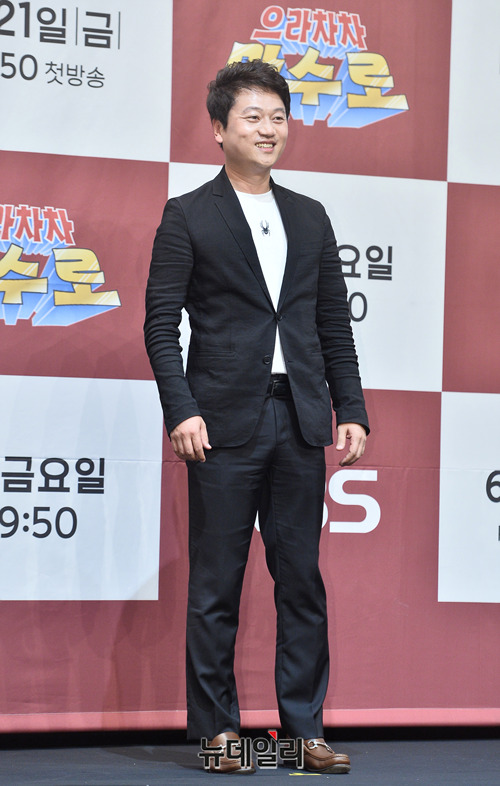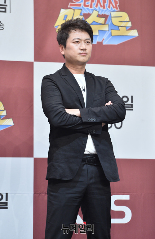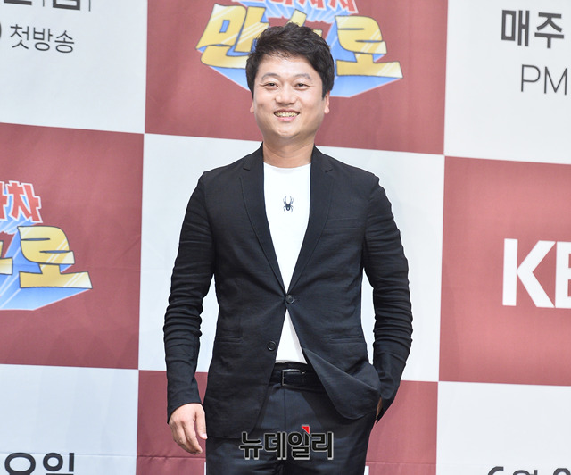 스포츠해설가 박문성이 21일 오후 서울 구로구 라마다 신도림호텔에서 열린 KBS 2TV 예능프로그램 '으라차차 만수로' 기자간담회에서 포토타임을 갖고 있다.
