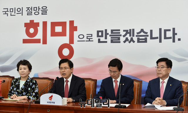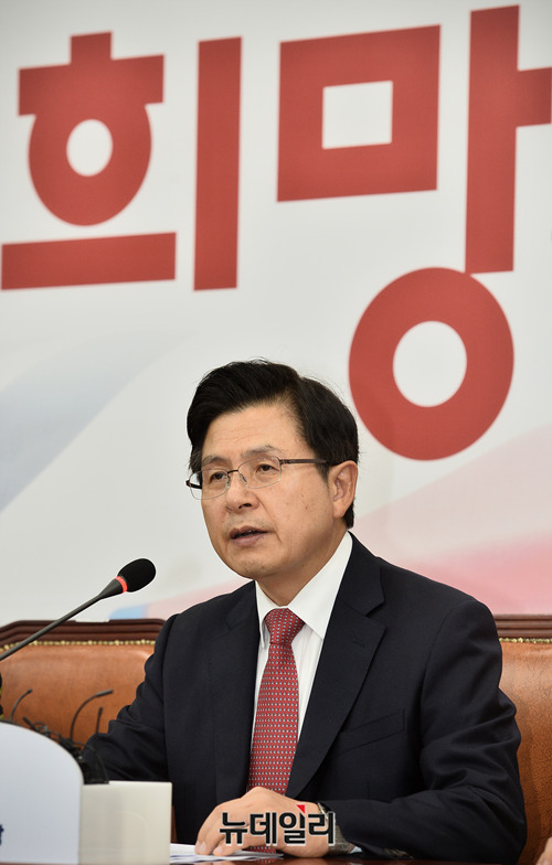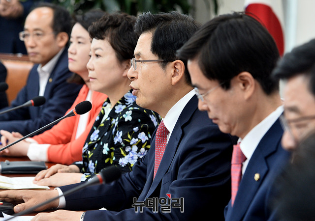 황교안 자유한국당 대표가 24일 오전 국회에서 열린 최고위원회의에서 모두발언을 하고 있다.