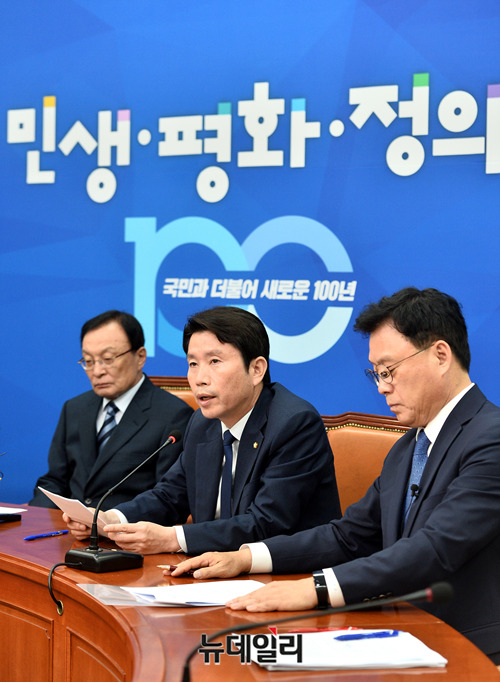 이인영 더불어민주당 원내대표가 24일 오전 국회에서 열린 최고위원회의에서 모두발언을 하고 있다.
