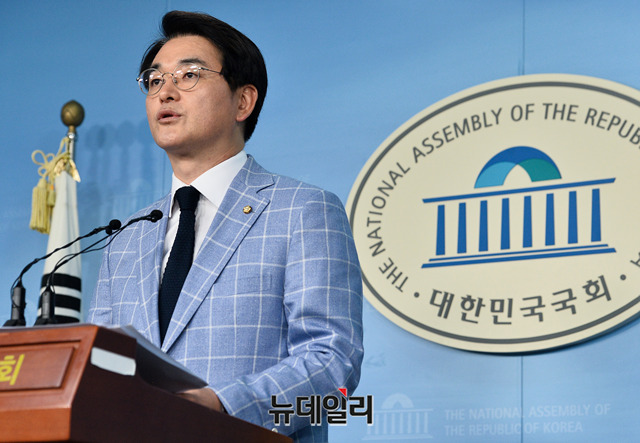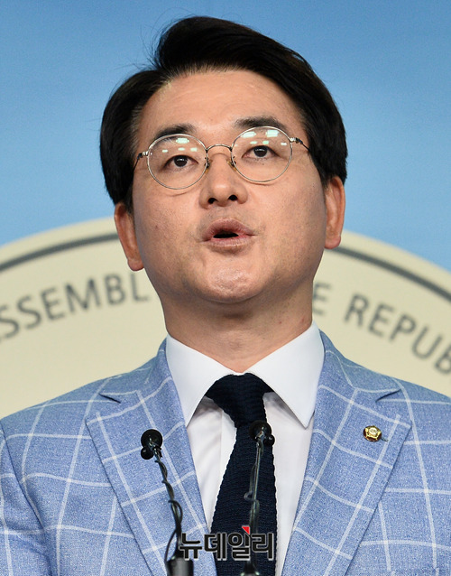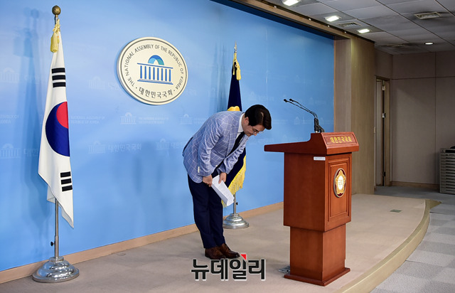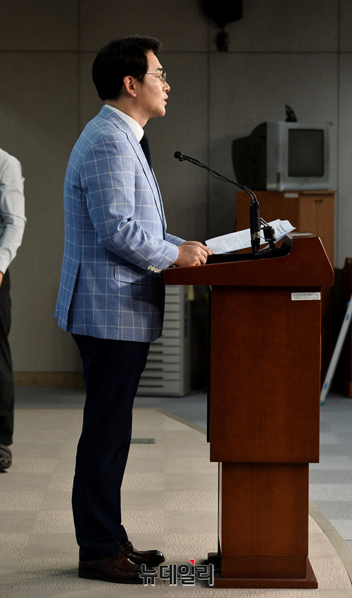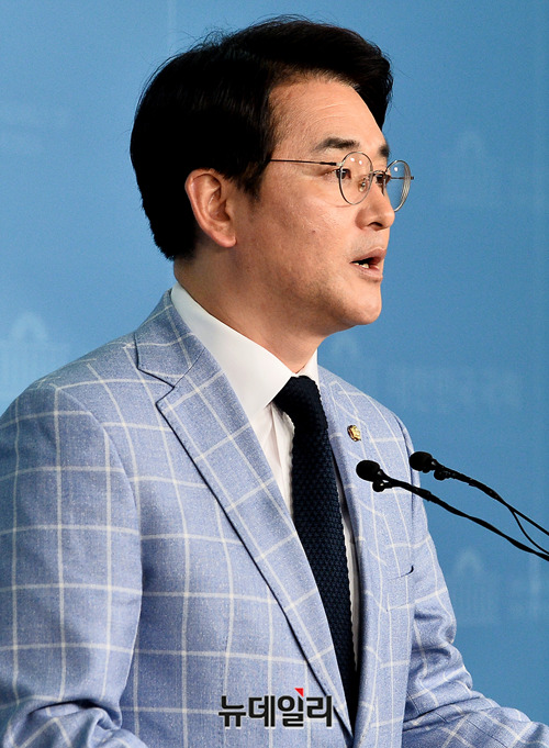 박용진 더불어민주당 의원이 24일 오전 국회 정론관에서 유치원 3법 관련 기자회견을 갖고 있다.