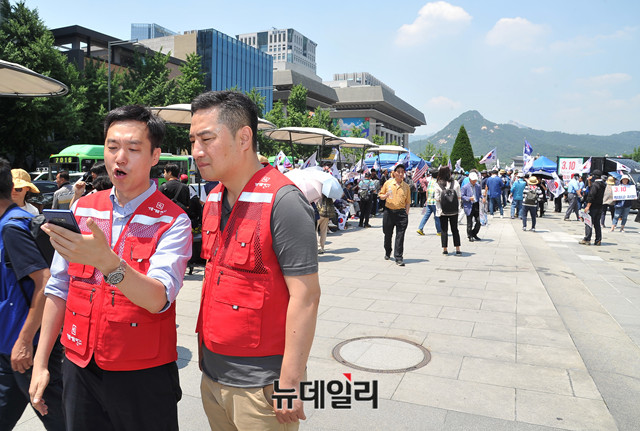 서울시는 이날 오전 5시께 경찰 및 용역을 투입, 광화문 광장에 설치됐던 우리공화당 천막 2동을 강제 철거했다. 이에 우리공화당은 이날 오후 2시 30분께 가로 3m, 세로 6m 크기의 천막 4동을 다시 추가 설치했다.