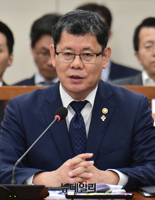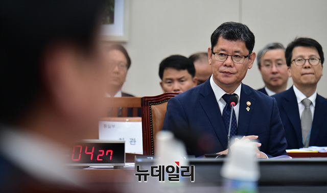김연철 통일부 장관이 25일 오후 국회 외교통일위원회 전체회의 출석해 의원들의 질문에 답하고 있다.