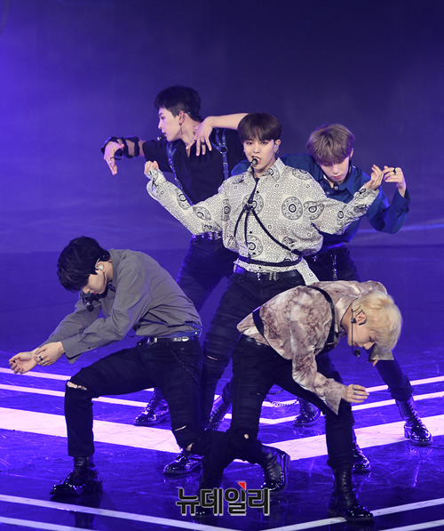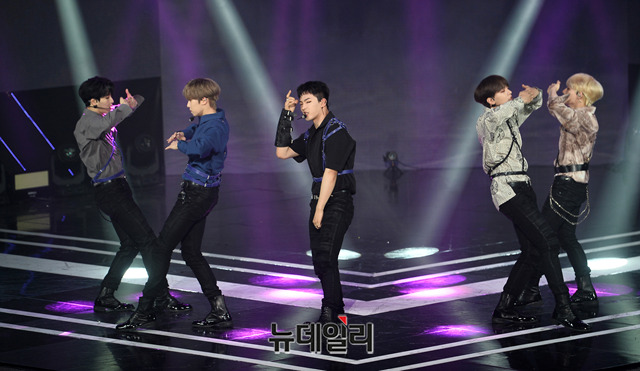 아이돌그룹 원어스가 25일 오후 서울 마포구 SBS 프리즘타워에서 열린 SBS MTV '더 쇼(THE SHOW)' 생방송에서 무대를 선보이고 있다.