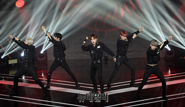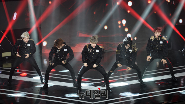 아이돌그룹 에이스가 25일 오후 서울 마포구 SBS 프리즘타워에서 열린 SBS MTV '더 쇼(THE SHOW)' 생방송에서 무대를 선보이고 있다.