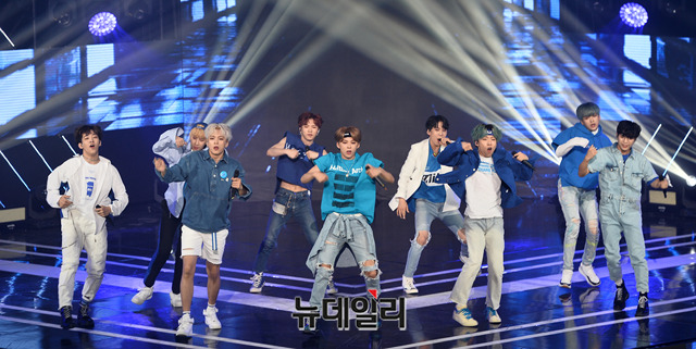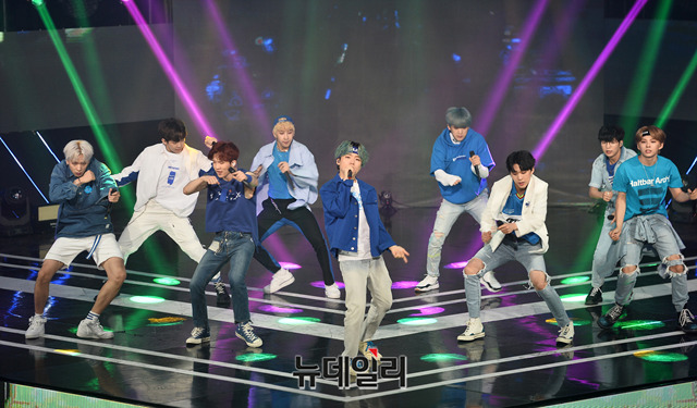 아이돌그룹 디크런치가 25일 오후 서울 마포구 SBS 프리즘타워에서 열린 SBS MTV '더 쇼(THE SHOW)' 생방송에서 무대를 선보이고 있다.