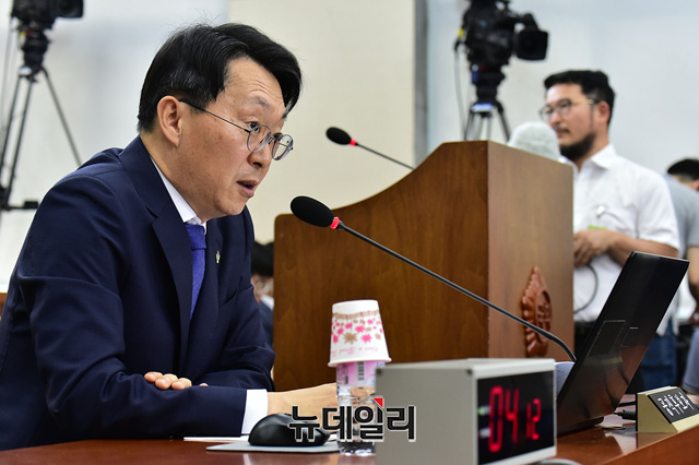 김현준 국세청장 후보자가 26일 오전 국회 기획재정위원회 회의실에서 열린 인사청문회에서 의원들의 질문에 답하고 있다.